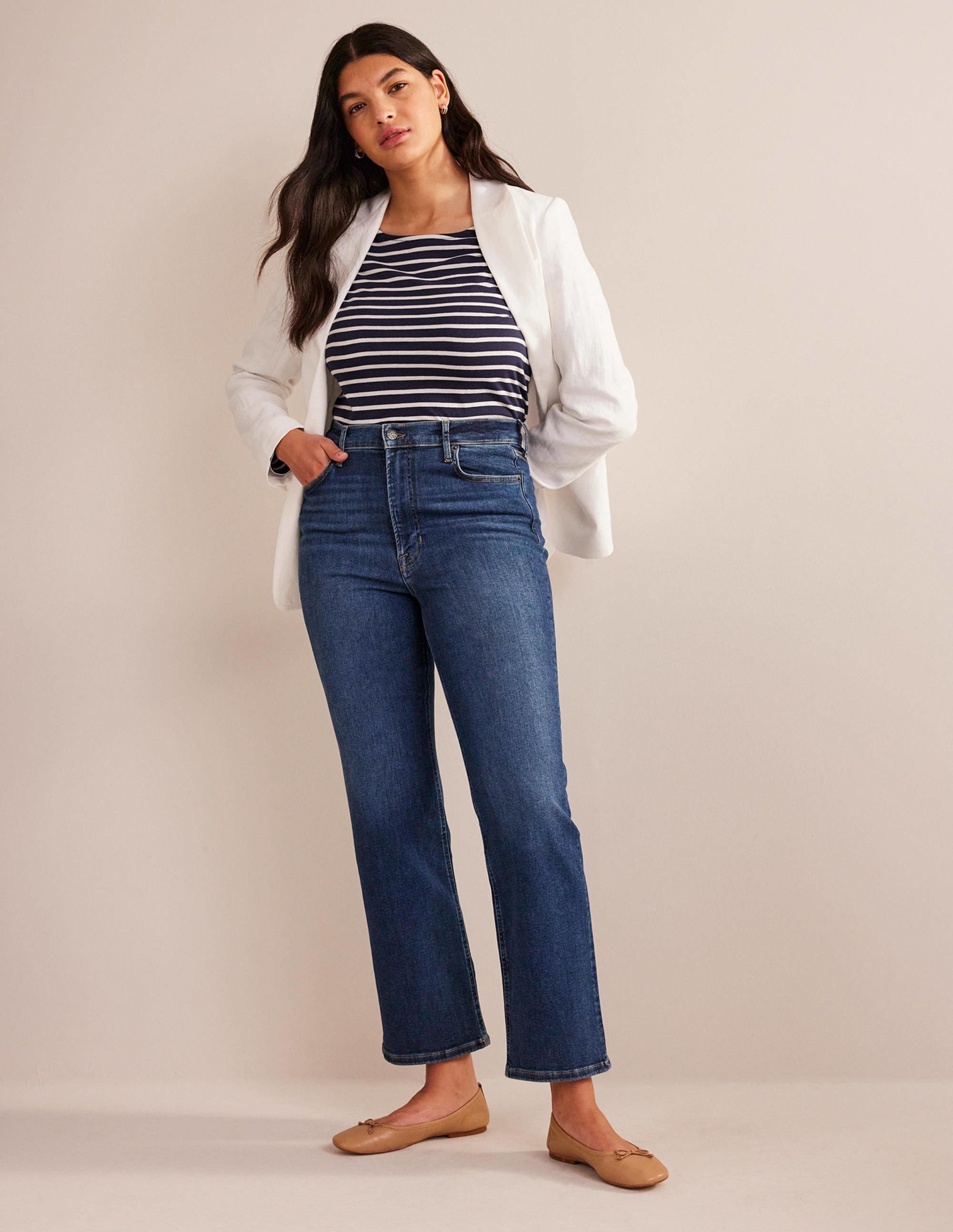 Cut from power-stretch denim that holds close to the body for a sculpting, curve-hugging effect, these high-rise, straight-leg jeans are all about the fit and feel. Incredible recovery ensures the perfect fit that never loses shape.
