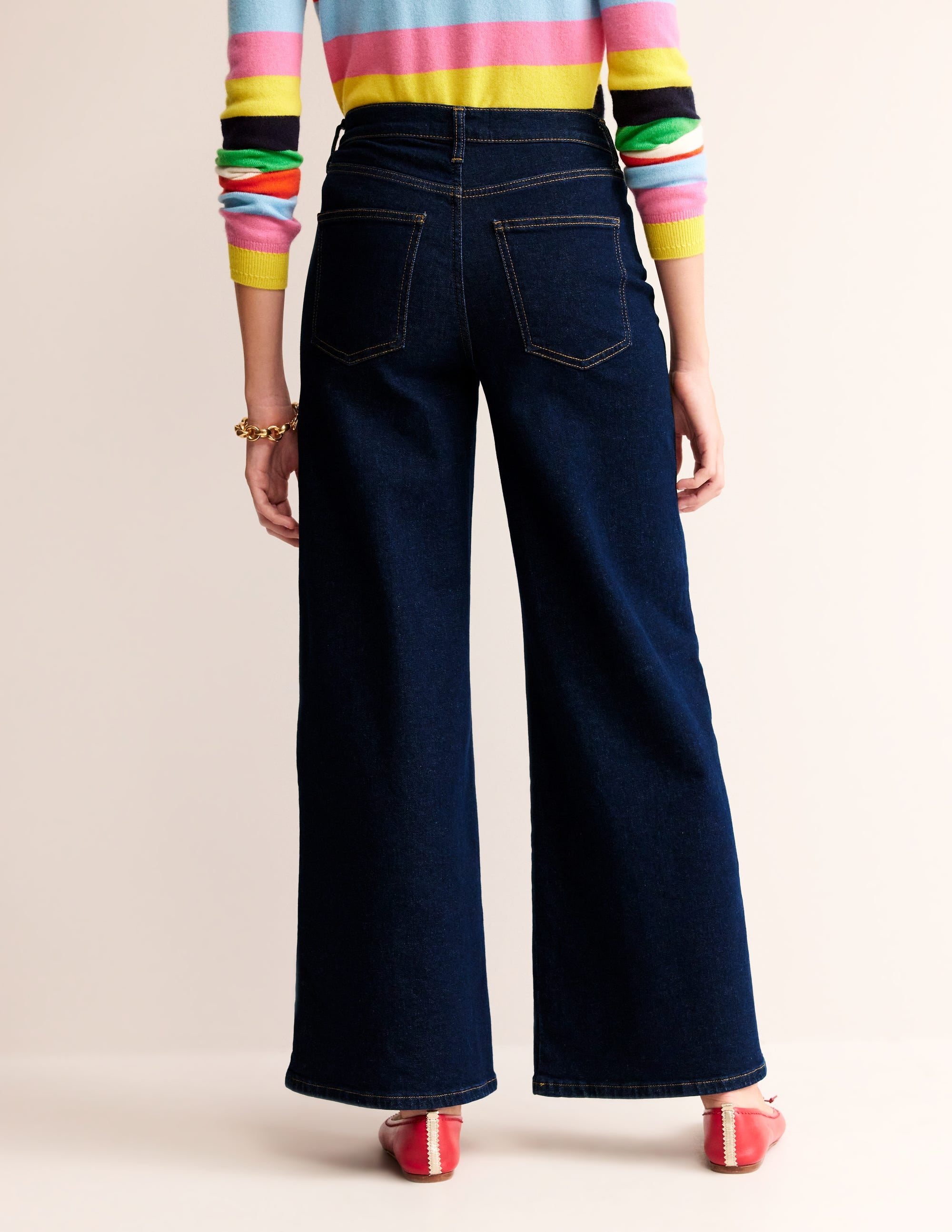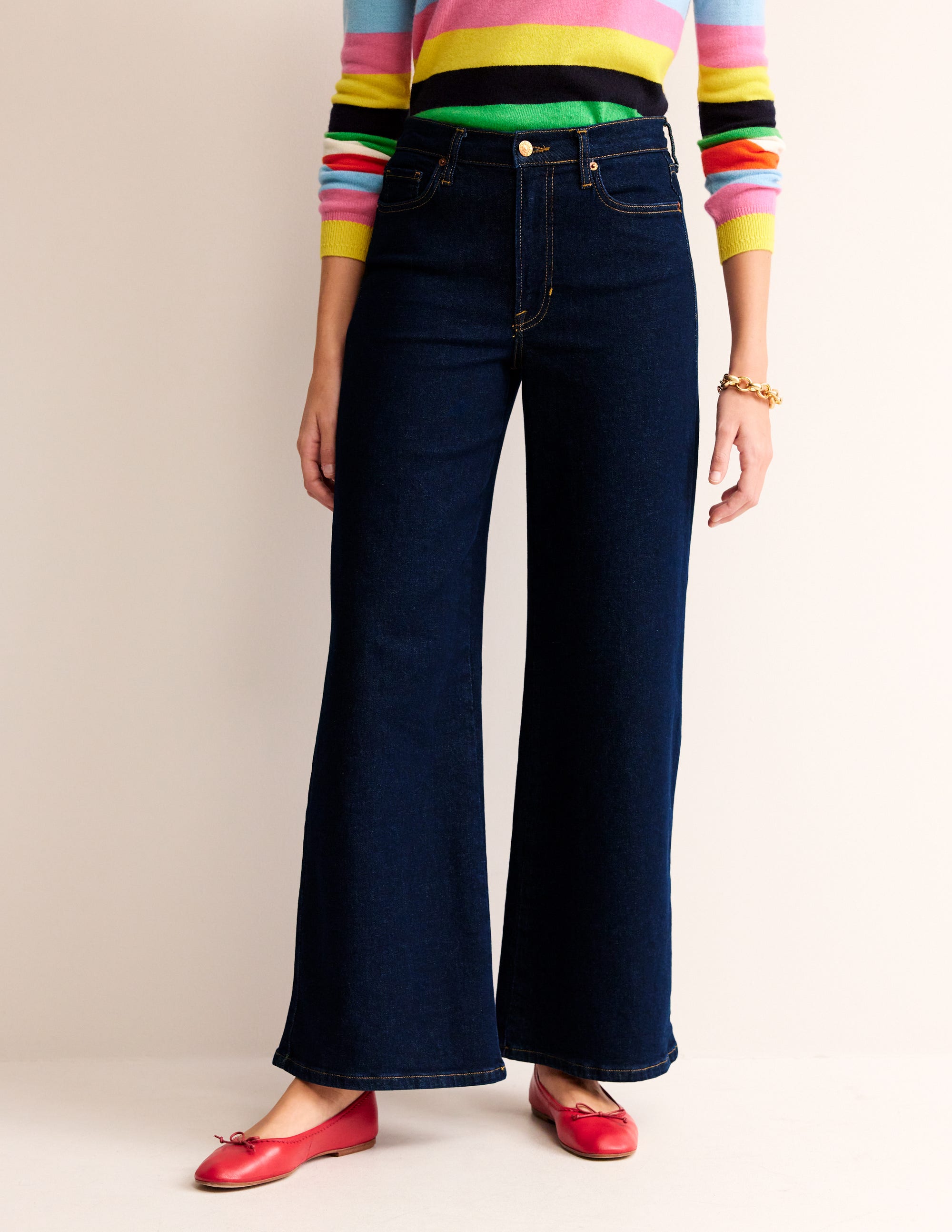 Woven with just the right amount of stretch, these high-rise, wide-leg jeans have a relaxed feel – the added ease means a little more room to move. For a more fitted look, we recommend sizing down.