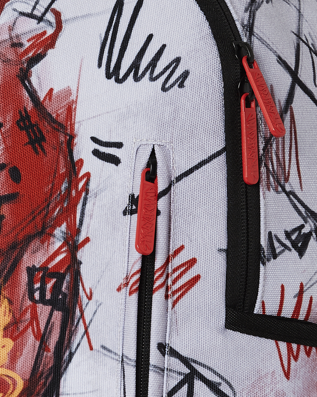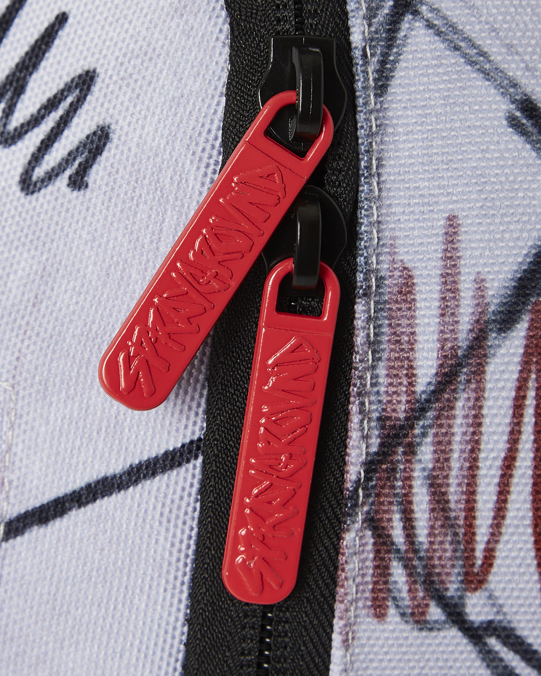 Dimensions: 18" x 6" x 11.5" • Front zipper pocket • Side pockets • Zippered Stash pocket • Separate velour sunglass compartment • Ergonomic mesh back padding • Adjustable Straps for custom sizing • Gold zippers with metal hardware • Metal "Sprayground Authentic" badge • Slide through back sleeve connects to carry-on luggage to free your hands