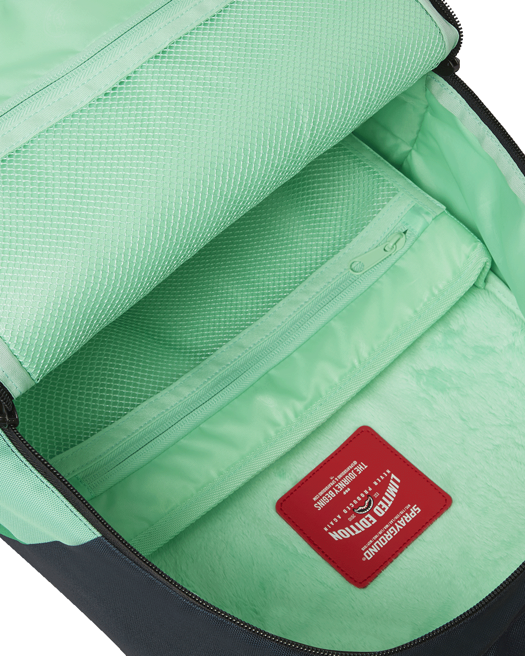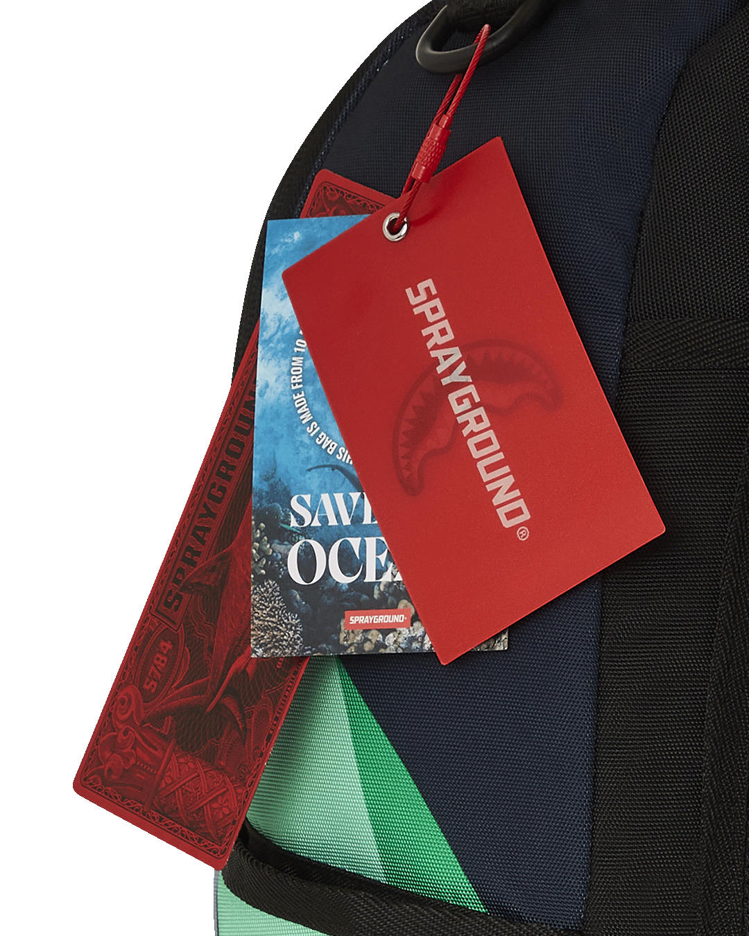 Dimensions: 18" x 6" x 11.5" • Front zipper pocket • Side pockets • Zippered Stash pocket • Separate velour sunglass compartment • Ergonomic mesh back padding • Adjustable Straps for custom sizing • Gold zippers with metal hardware • Metal "Sprayground Authentic" badge • Slide through back sleeve connects to carry-on luggage to free your hands
