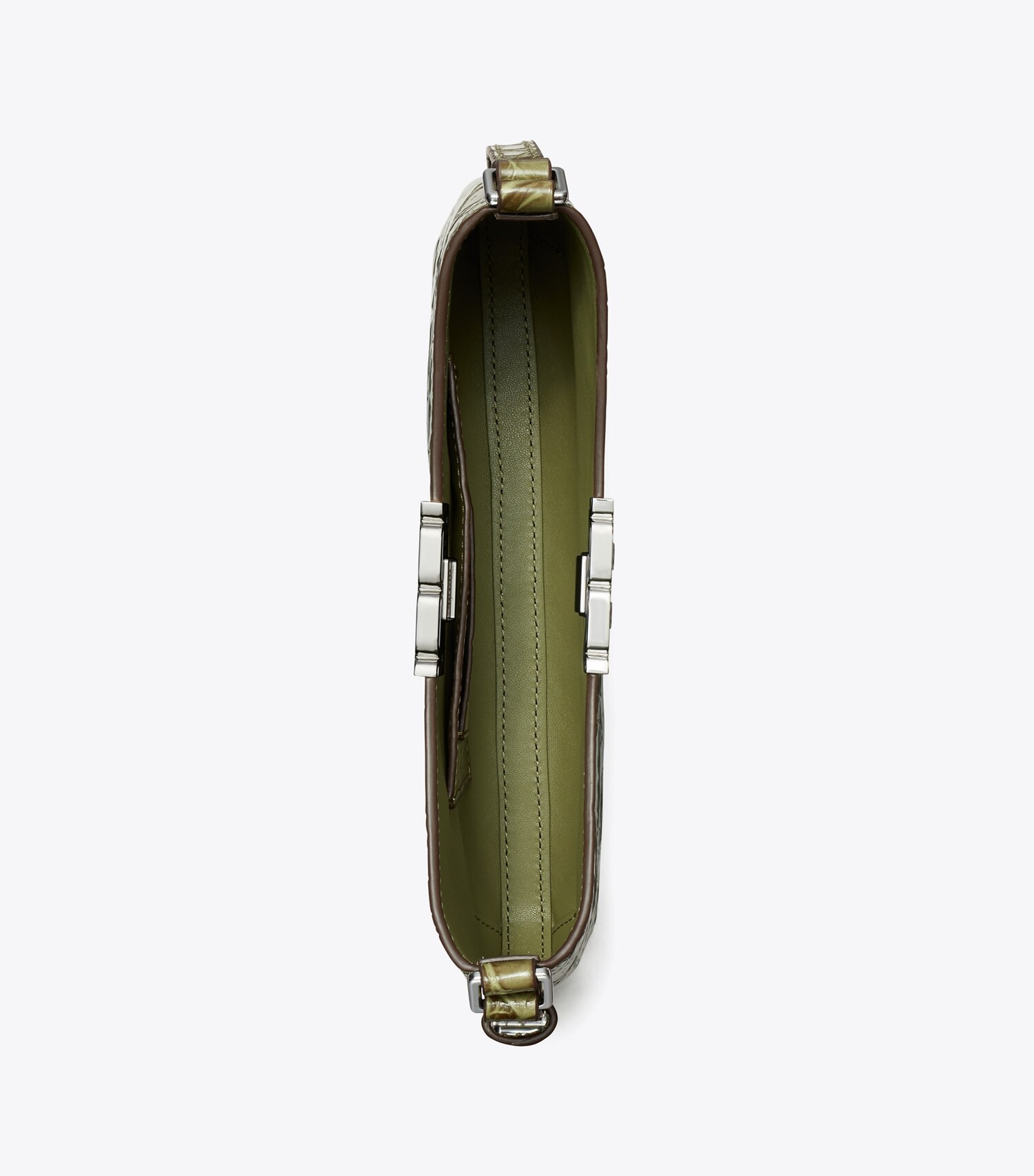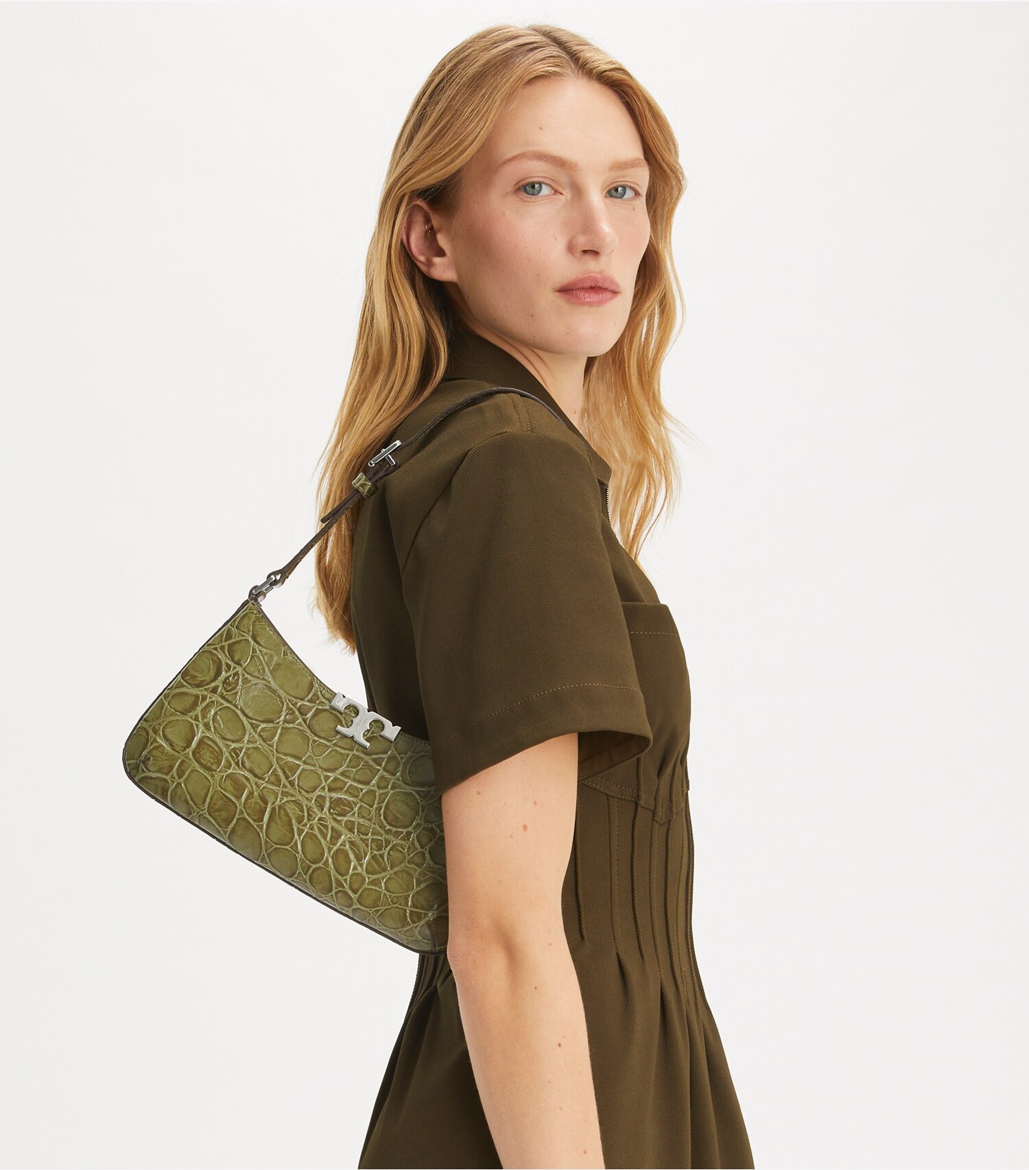 Our Eleanor Slim Shoulder Bag is made of croc-embossed leather with a magnetic snap closure. The ladylike silhouette is finished with smooth Double T hardware. A jewel of craftsmanship, designed to carry with ease.
