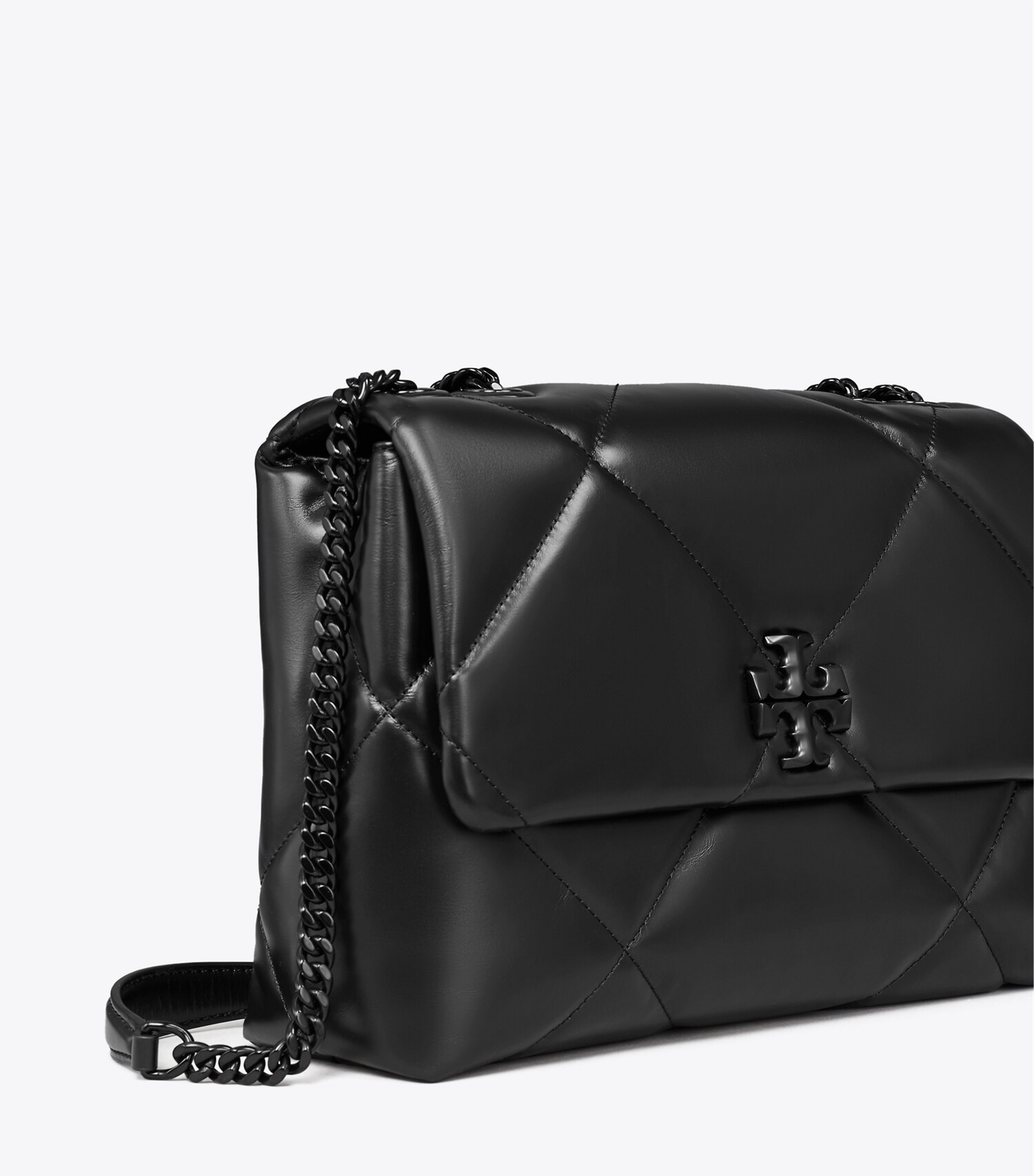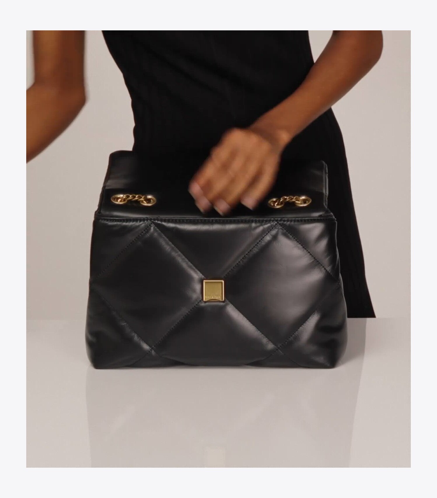 The Kira Diamond Quilt Shoulder Bag is irresistibly soft with blown-up diamond quilting and pillowy dimension. The quilted bag is punctuated by powder-coated Double T hardware. Wear the convertible curb chain strap doubled over the shoulder or long and crossbody.