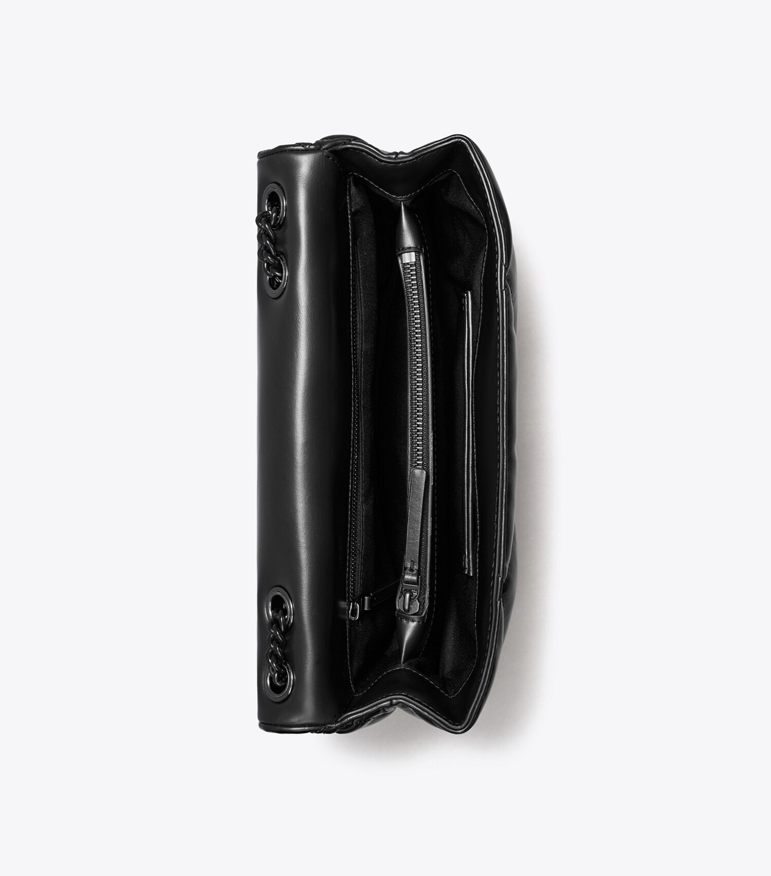 - Convertible chain shoulder strap with 23" (58.5cm) drop; leather shoulder guard for comfort